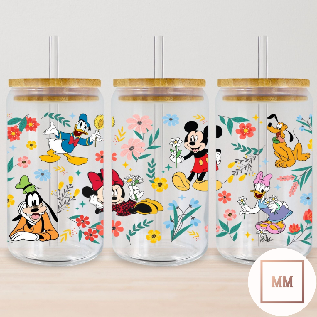 16oz Floral Mick & Friends Glass Cup