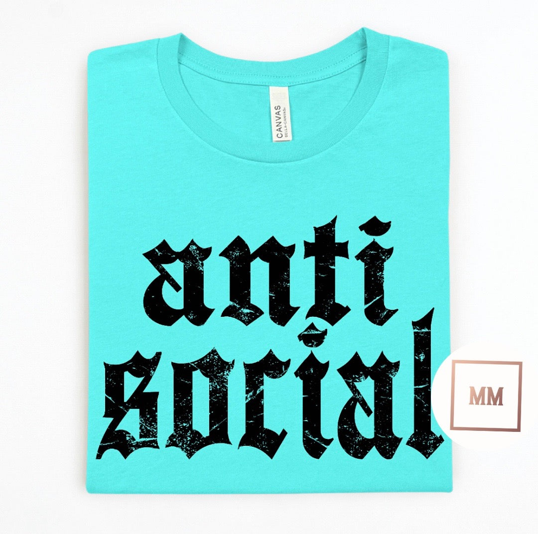 Introducing the Anti Social Tee, designed with big and bold letters to give off the perfect anti social vibes. Show the world you need space with this statement piece. Leave a lasting impression and assert your independence with this must-have tee.