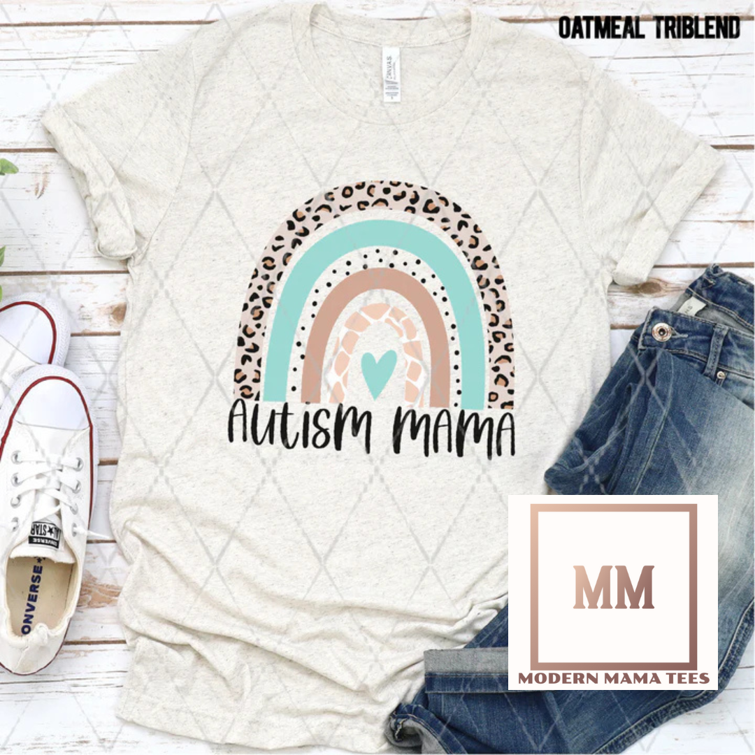 Show your love for your child with autism with our Autism Mama Tee. This shirt features the phrase "autism mama" in a beautiful pastel rainbow design. Wear it with pride and support autism awareness. Made from high-quality materials for comfort and durability.