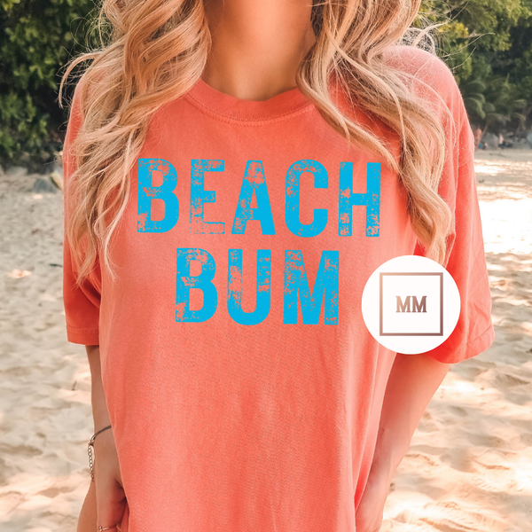 Stand out on the beach with our Beach Bum Tee. Featuring a vibrant neon orange color tee paired with a summery blue design, this tee is perfect for the ultimate beach bum. Stay cool and stylish all day long with our comfortable and eye-catching tee.