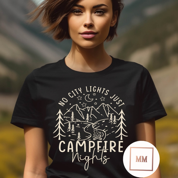 Experience the serene beauty of nature with our Campfire Nights Tee. With no city lights to distract you, our tee allows you to fully immerse yourself in the warm glow of the campfire. Let go of stress and unwind in the peacefulness of the great outdoors.