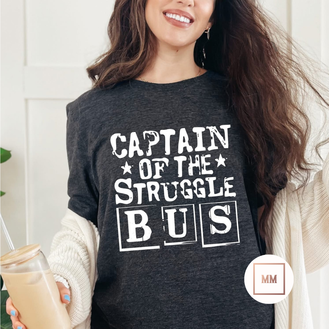 This Captain of the Struggle Bus Tee is perfect for anyone who has ever felt like they're constantly juggling too many things. As the captain of the struggle bus, you'll proudly display your ability to handle any challenge that comes your way. With this tee, you'll not only look stylish, but also inspire others with your resilience and determination.