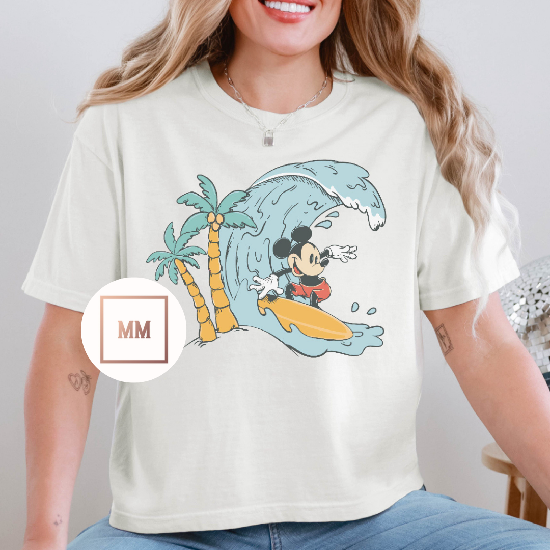 The Catching Waves Tee is the perfect addition to your summer wardrobe. Made for the beach and beyond, this tee features a bold graphic of your fave mouse catching waves. Its lightweight fabric will keep you cool and comfortable while you ride the waves of summer.
