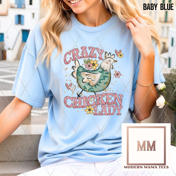 Introducing the Crazy Chicken Lady Tee - the perfect addition to any chicken enthusiast's wardrobe. With its cute chicken design and delicate flower accents, this tee is sure to make a statement. Show off your love for chickens with style and grace.