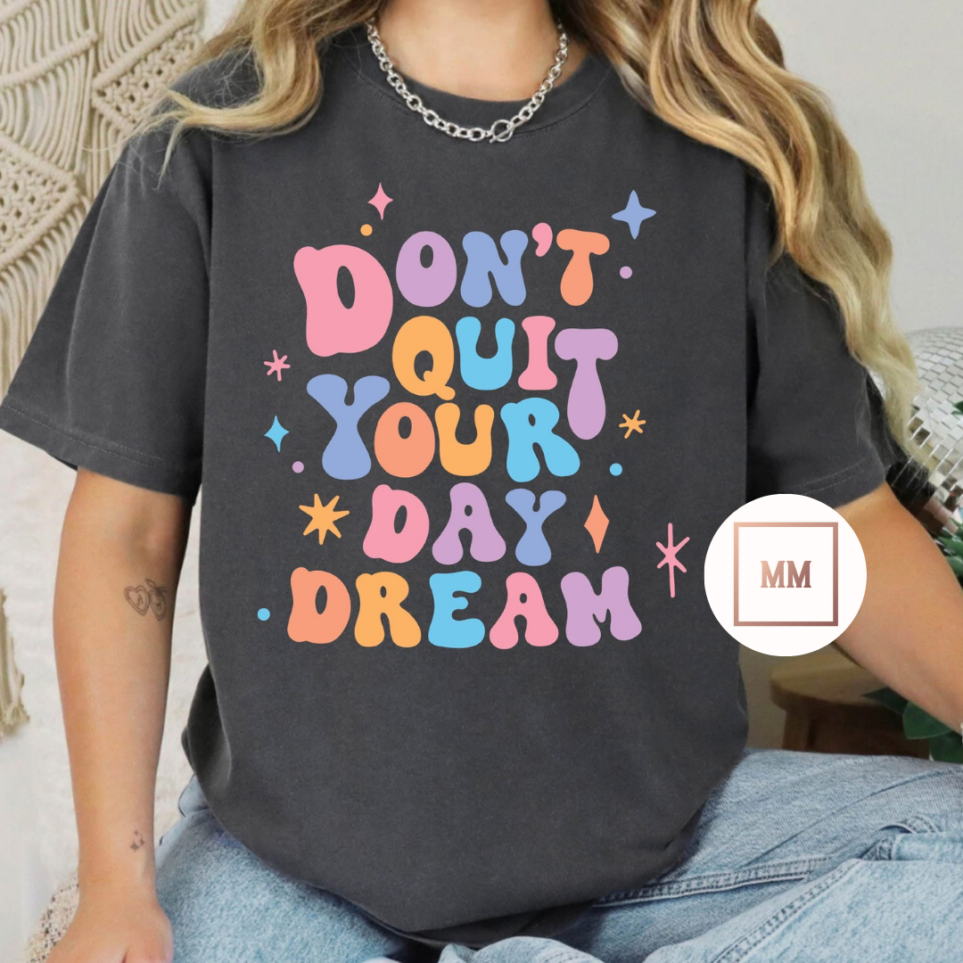 Unlock your potential with our Day Dream Tee. This high-quality shirt features a motivational message, reminding you to never give up on your dreams. Made with premium materials, it offers both comfort and inspiration for your daily life. Believe in yourself and chase your dreams with our Day Dream Tee.