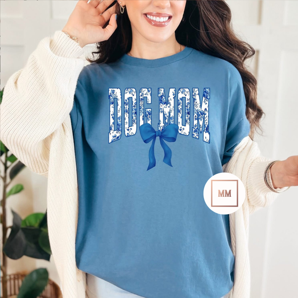 This stylish Dog Mom Bow Tee is perfect for any proud dog mother. Featuring a beautiful floral pattern and a cute bow detail, this tee combines fashion and canine-loving pride. Show off your love for your furry friend with this must-have top.
