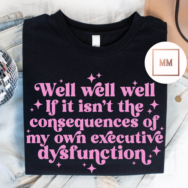 Introducing our Executive Disfunction Tee, perfect for those who experience the consequences of executive disfunction. Made with a touch of humor, this tee is perfect for silly moments. Stay comfortable and stylish while making a statement.