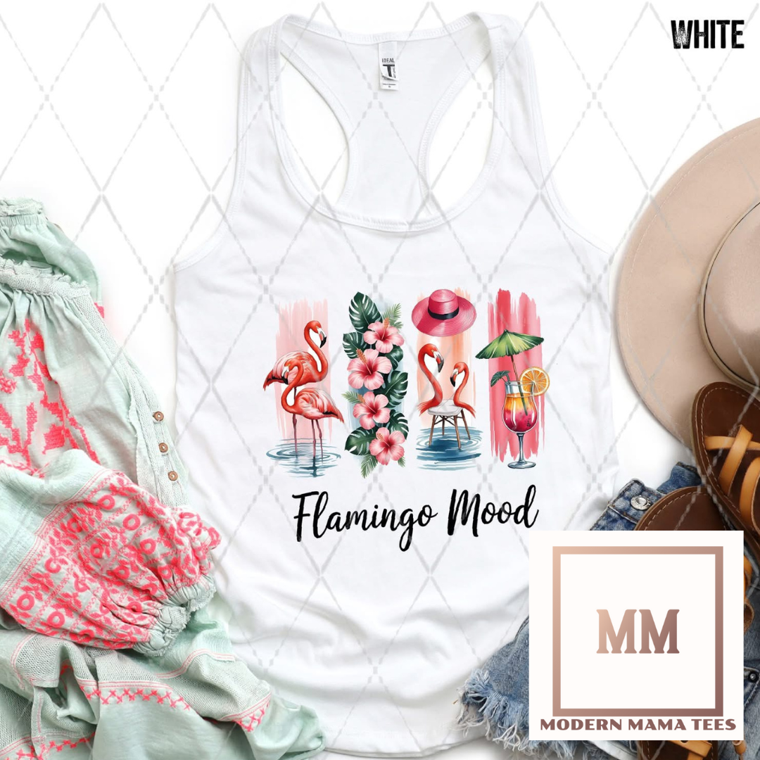The Flamingo Mood Tank features a playful design of flamingos, flowers, and drinks. Made with high-quality materials, this tank is perfect for adding a touch of fun to any outfit. Express your mood and make a statement with this unique and stylish tank.