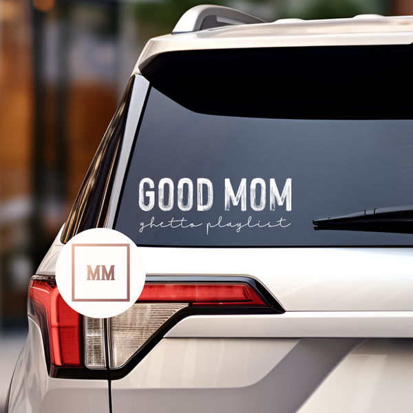 Show off your unique style with our Good Mom, Ghetto Playlist Car Decal. Made with high-quality materials, this decal adds a touch of fun and personality to your vehicle. Express your love for music and being a great mom all in one! Easy to apply and remove. Perfect gift for any mom who loves to jam out!