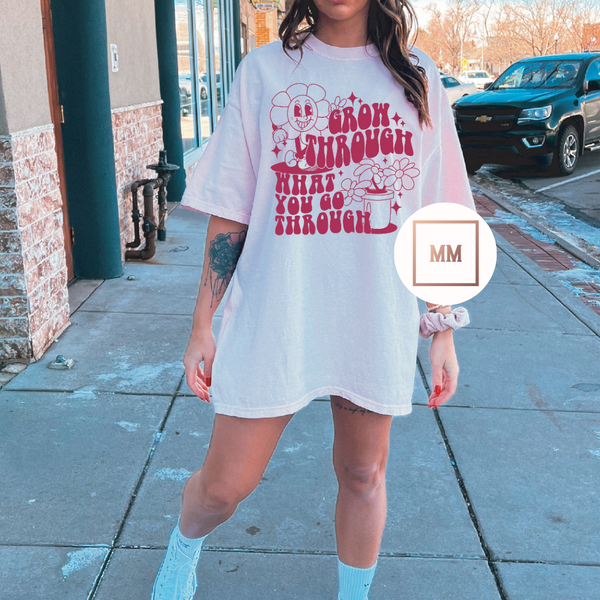 This Grow Through Tee is designed to help you grow through whatever challenges you may face. Made with high-quality materials, this tee provides comfort and durability for everyday wear. The empowering message serves as a reminder to persevere and overcome obstacles. Perfect for those seeking motivation and inspiration.