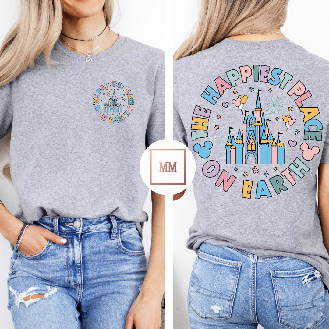 Introducing the Happy Place Tee, the must-have shirt for any true fan of the happiest place on earth. Show off your love for the enchanting princess castle in a stylish and comfortable way. Join the magic with this tee that brings joy to all who wear it.