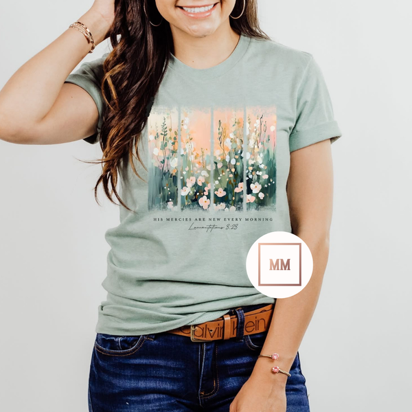 The His Mercies Are New Every Morning Tee features a powerful message based on Lamentations 3:22-23. With this tee, show your faith while expressing the uplifting message that God's love and compassion are renewed every single day. A perfect reminder for those seeking comfort and strength.