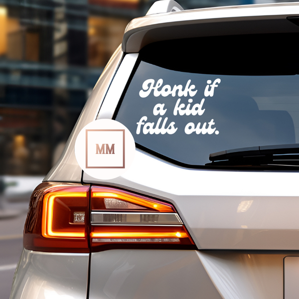 Keep your little ones safe with the Honk If A Kid Falls Out Car Decal. This decal serves as a reminder for drivers to be extra cautious when sharing the road with children. Made with durable material, it will withstand various weather conditions.