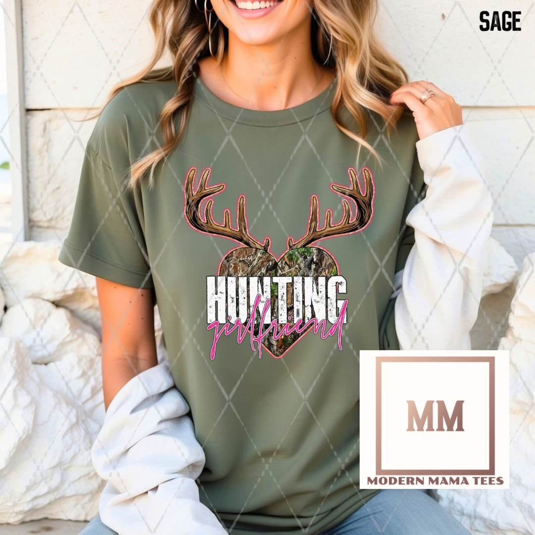 Get ready for hunting season with our Hunting Girlfriend Tee! This camo shirt features a unique design with deer antlers, perfect for showing off your boyfriends love for hunting.