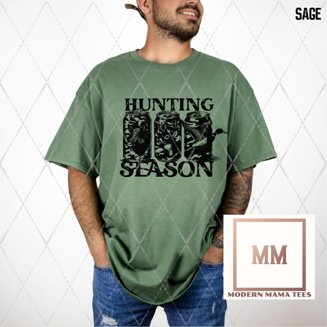 Get ready for the great outdoors with our Hunting Season Tee. Made from army green fabric with a stylish camo pattern, this tee is perfect for any hunting adventure. Plus, with a fun design featuring beers and ducks, you'll be ready to cheers your successful hunt.