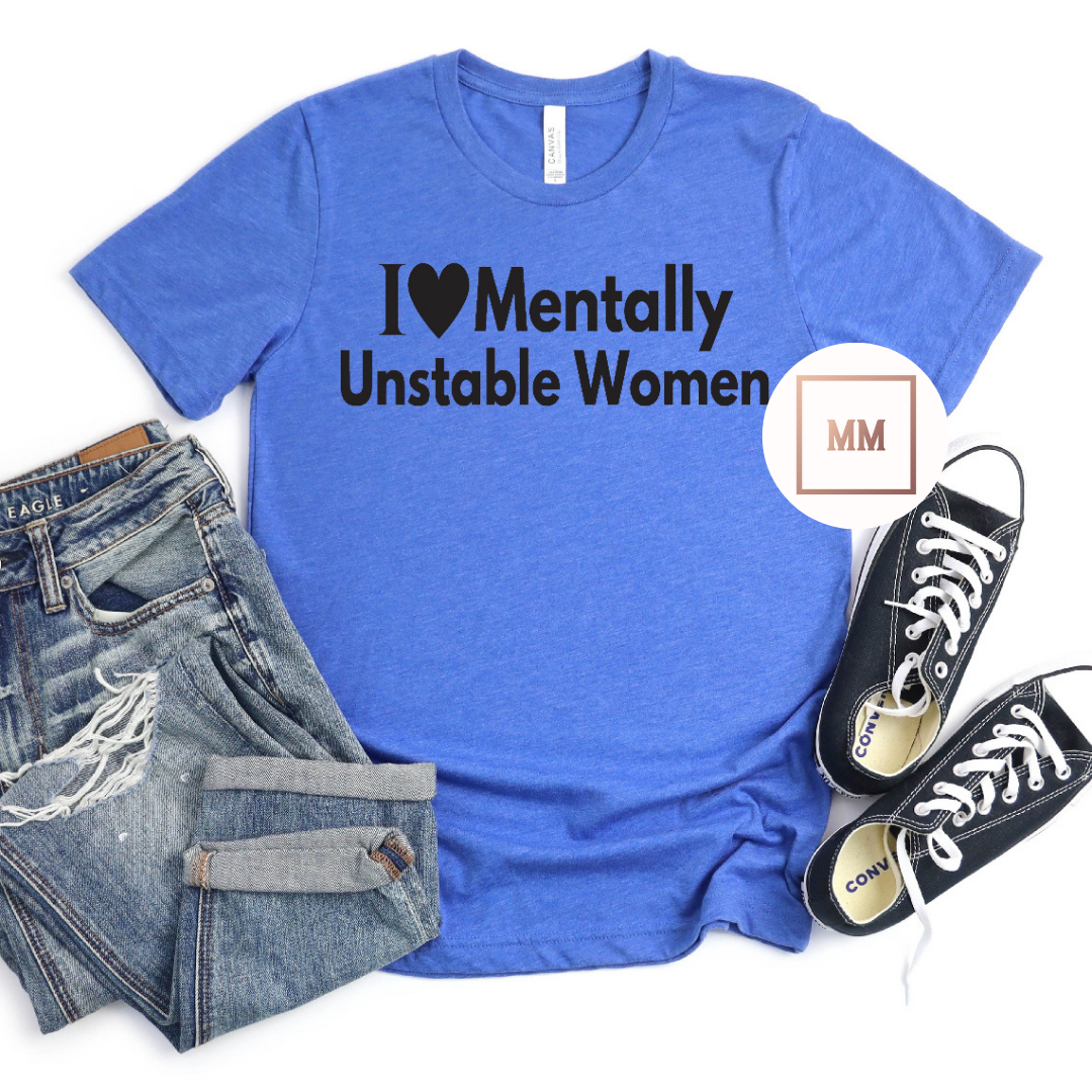 This tee is perfect for anyone who loves mentally unstable women. Its lighthearted design is sure to bring a smile and showcase your appreciation for these unique individuals. Made with high-quality materials and a comfortable fit, this tee is a must-have for any wardrobe.
