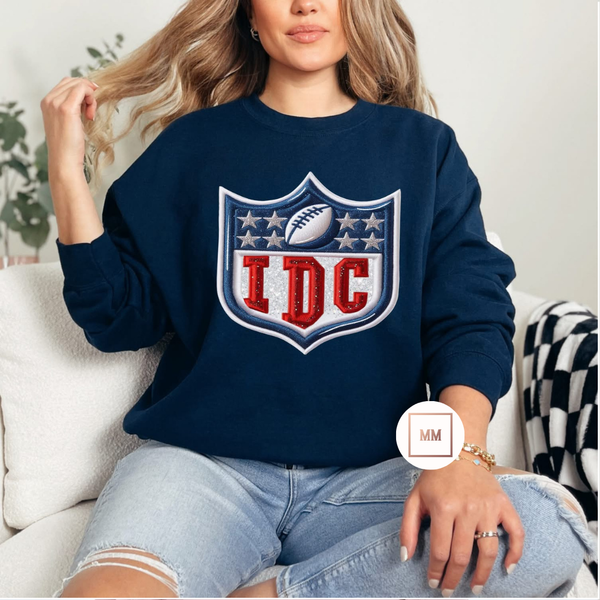 Get ready to show off your love for football with the IDC Football Sweatshirt. This navy sweatshirt proudly displays the famous football logo & "IDC". Enjoy comfort and style with this must-have sweatshirt.