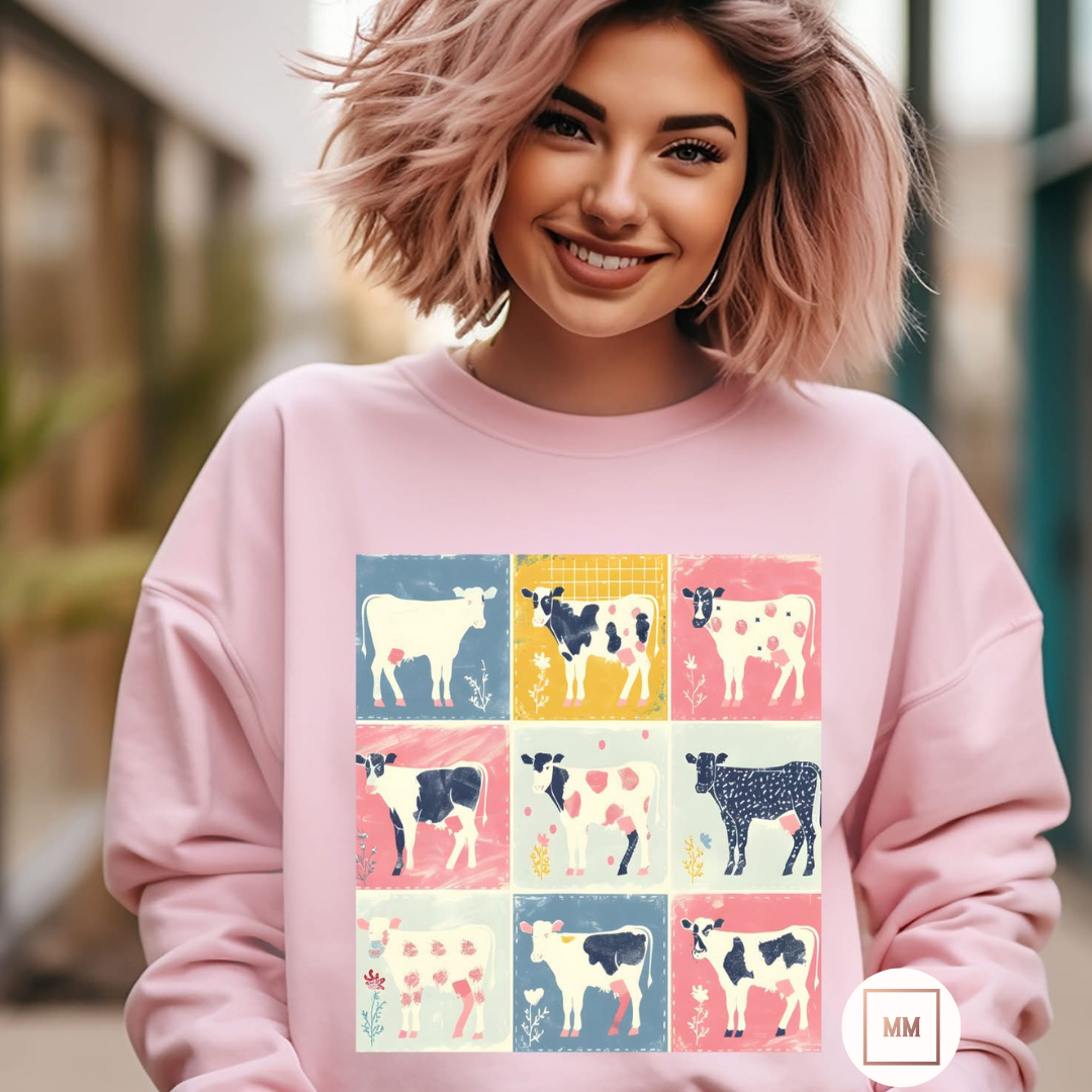 This Patchwork Cow Sweatshirt is a must-have for anyone looking to add a bohemian touch to their wardrobe. Made from soft, cozy material, it features a unique patchwork design featuring a stylish cow. Perfect for the fashion-forward individual who loves to make a statement with their clothing.