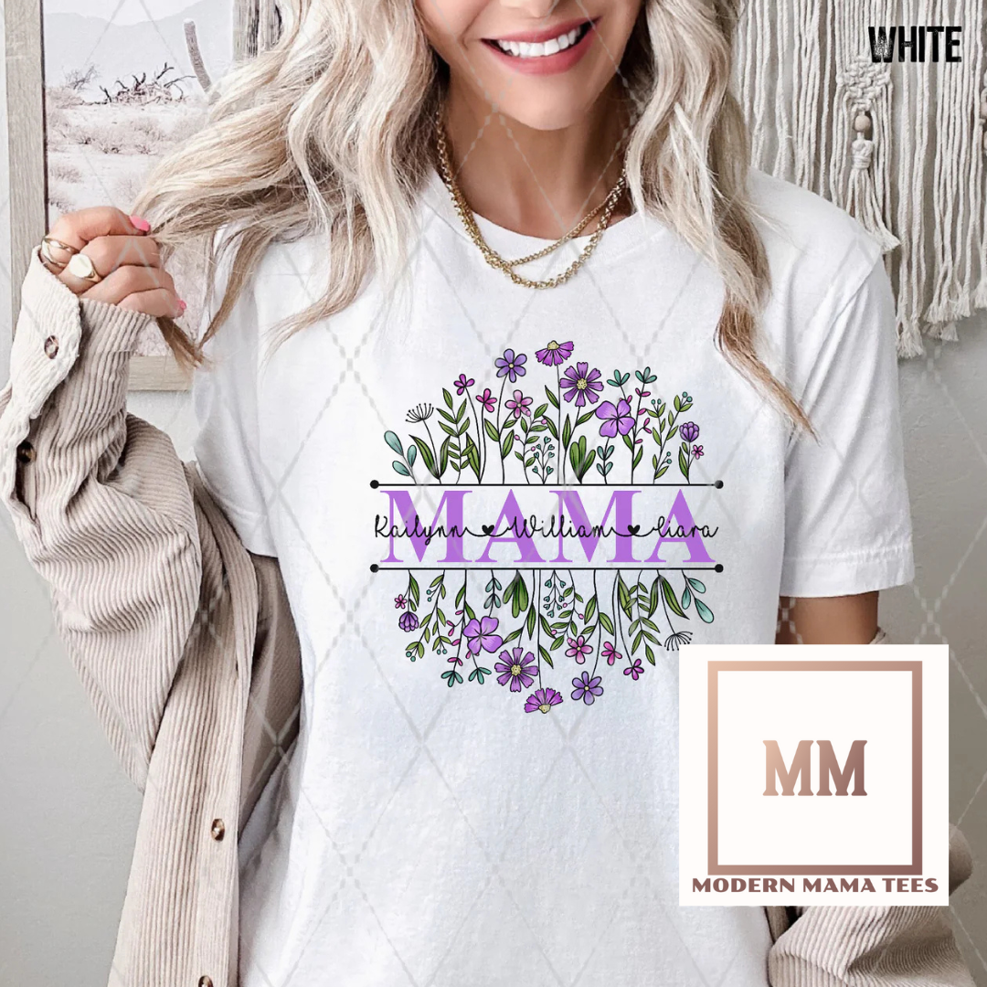 This personalized purple floral tee is the perfect gift for all the mamas, grandmas, and aunties in your life. Customize it with the names of their beloved children for a truly unique and heartfelt present. Show your loved ones how much they mean to you with this special, one-of-a-kind tee.