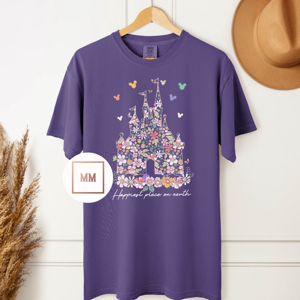Searching for the perfect tee to show off your love for the happiest place on earth? Look no further than our Purple Happiest Place on Earth Tee! This black tee features a charming flower castle graphic and playful mouse balloons, making it the ideal choice for any fan. Made with quality materials, this tee is both comfortable and stylish. Choose the Purple Happiest Place on Earth Tee and spread some magic wherever you go!
