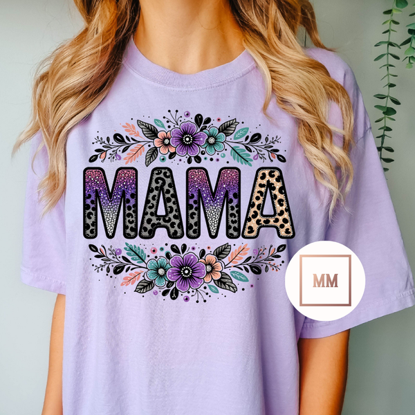 This comfortable Mama tee features a unique leopard print design with bold, eye-catching letters, and faux rhinestone accents. The perfect addition to any stylish wardrobe, this tee adds a touch of fun and sophistication to any outfit. Made with soft and breathable fabric for all-day comfort.