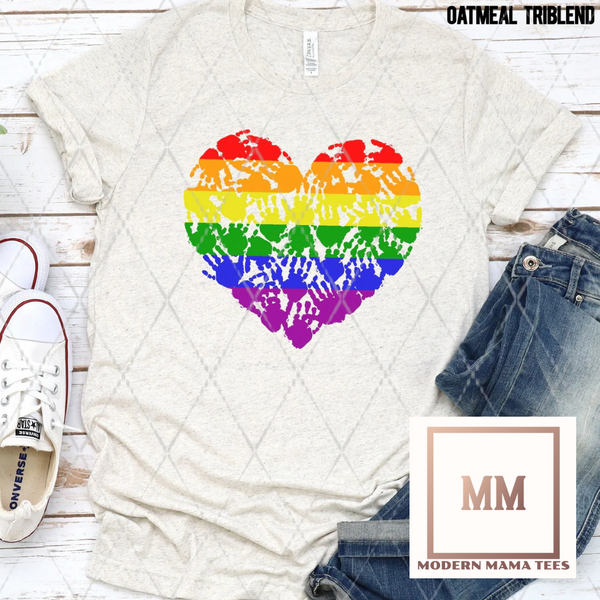 This Rainbow Hand Heart Tee showcases a beautiful rainbow heart made of hands. With its vibrant color and powerful message, this shirt is perfect for spreading awareness and showing support. Made with high-quality materials, it is comfortable to wear and durable. Show your pride and make a statement with this unique and inspiring tee.