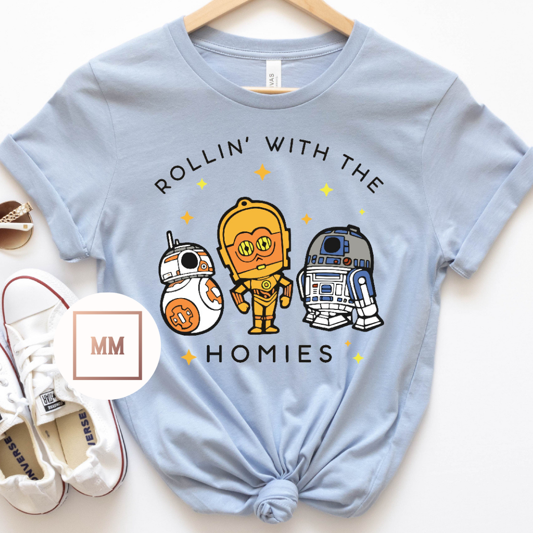 Stay stylish and pay tribute to your favorite SW characters with our Rollin' With The Homies Tee. Featuring a playful design, this tee is perfect for showing off your geeky side while hanging out with your squad. Made with high-quality material, it's comfortable for all-day wear. Join the force and roll with your homies today!