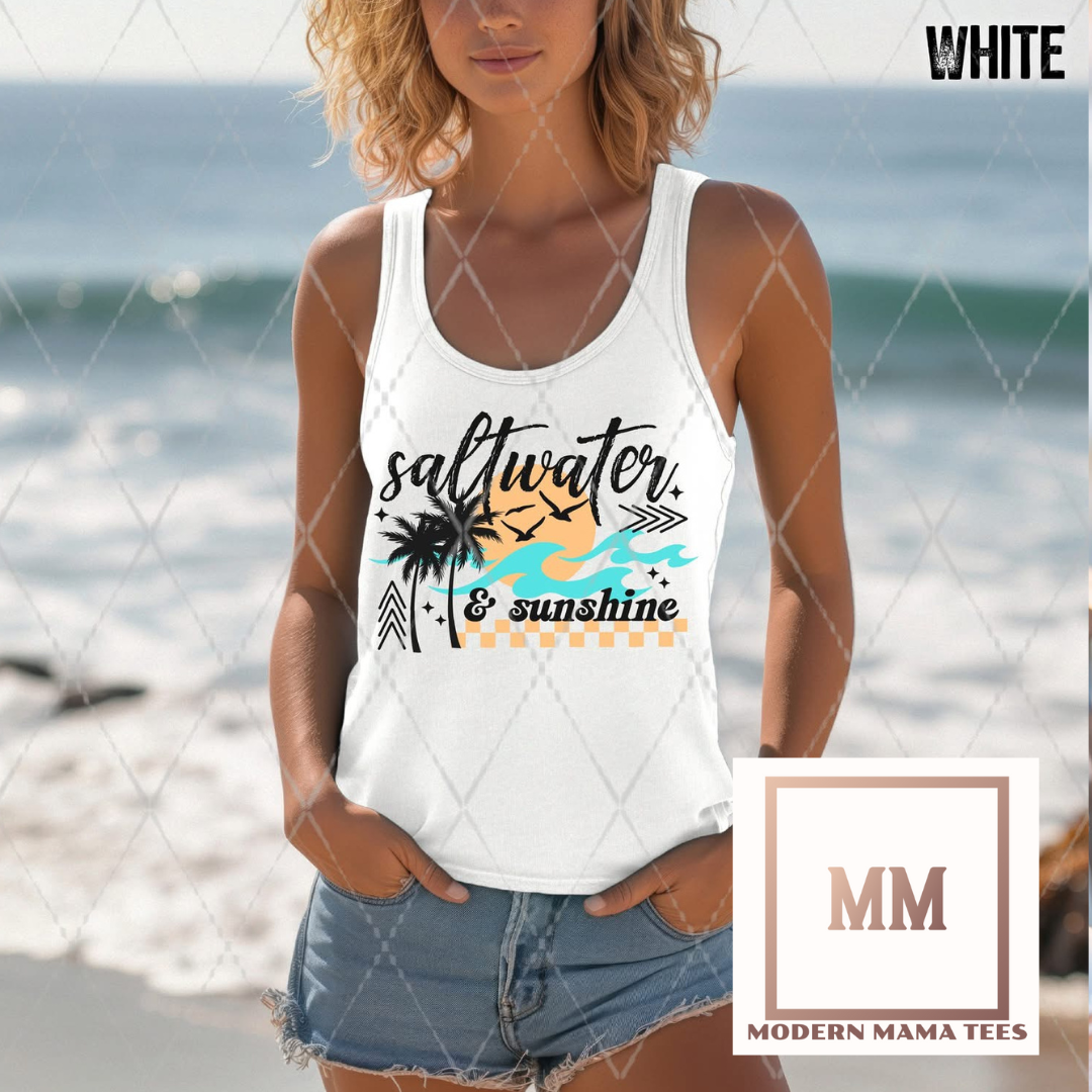 Explore the ocean in style with our Salt Water and Sunshine Tank. Made with a cute design that will surely make a statement. Enjoy the benefits of the sun and sea with this must-have tank.