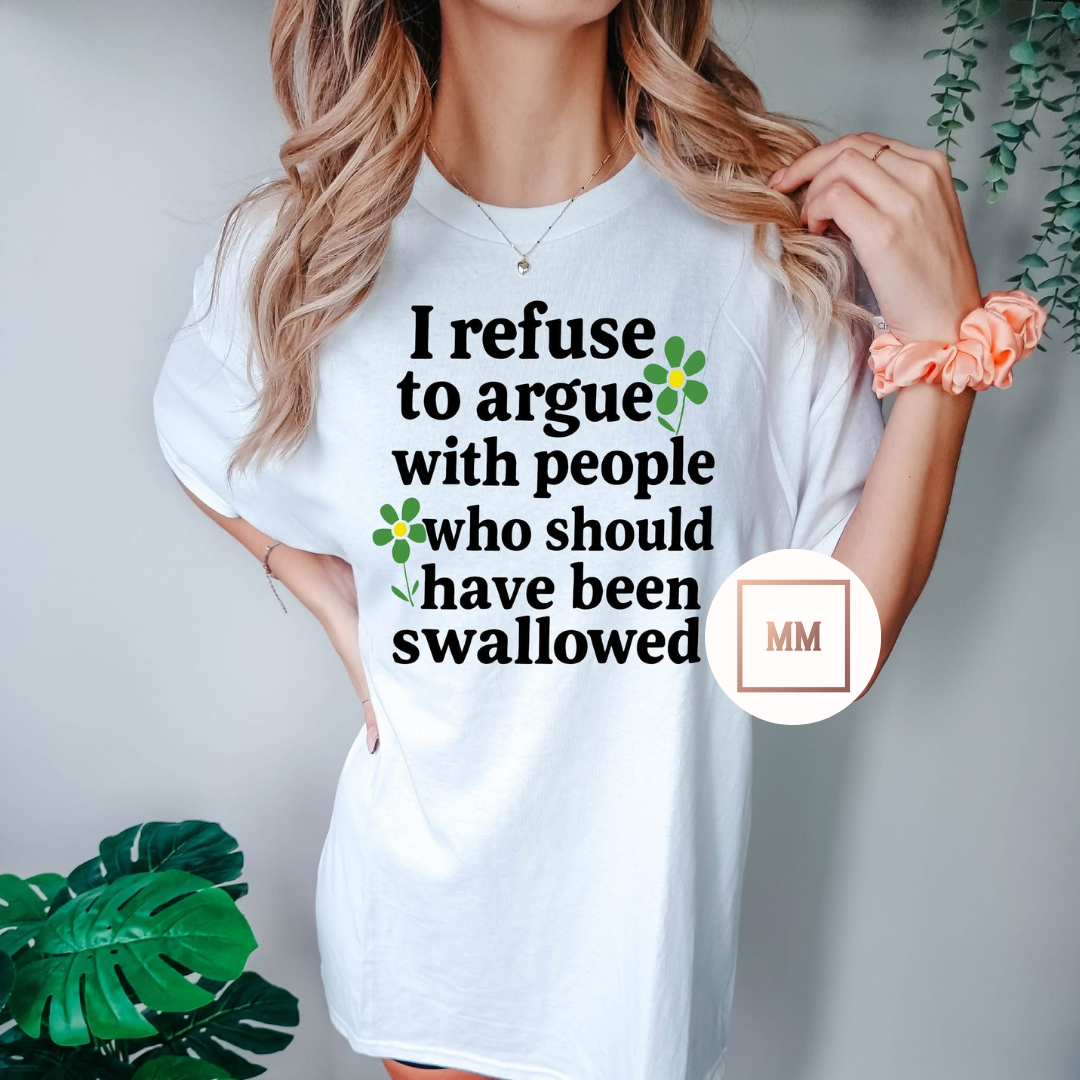 This Should Have Been Swallowed Tee is perfect for those who value peace and avoid unnecessary arguments. Its witty joke serves as a reminder to stay calm and ignore those who aren't making valid arguments. Made with quality fabric for maximum comfort.