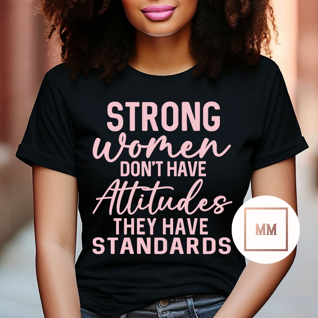 This Strong Women Have Standards Tee exudes confidence and empowerment. You know what you want and have standards. This tee promotes a positive and assertive mindset. Step up your game with this tee and show the world that strong women are in control.