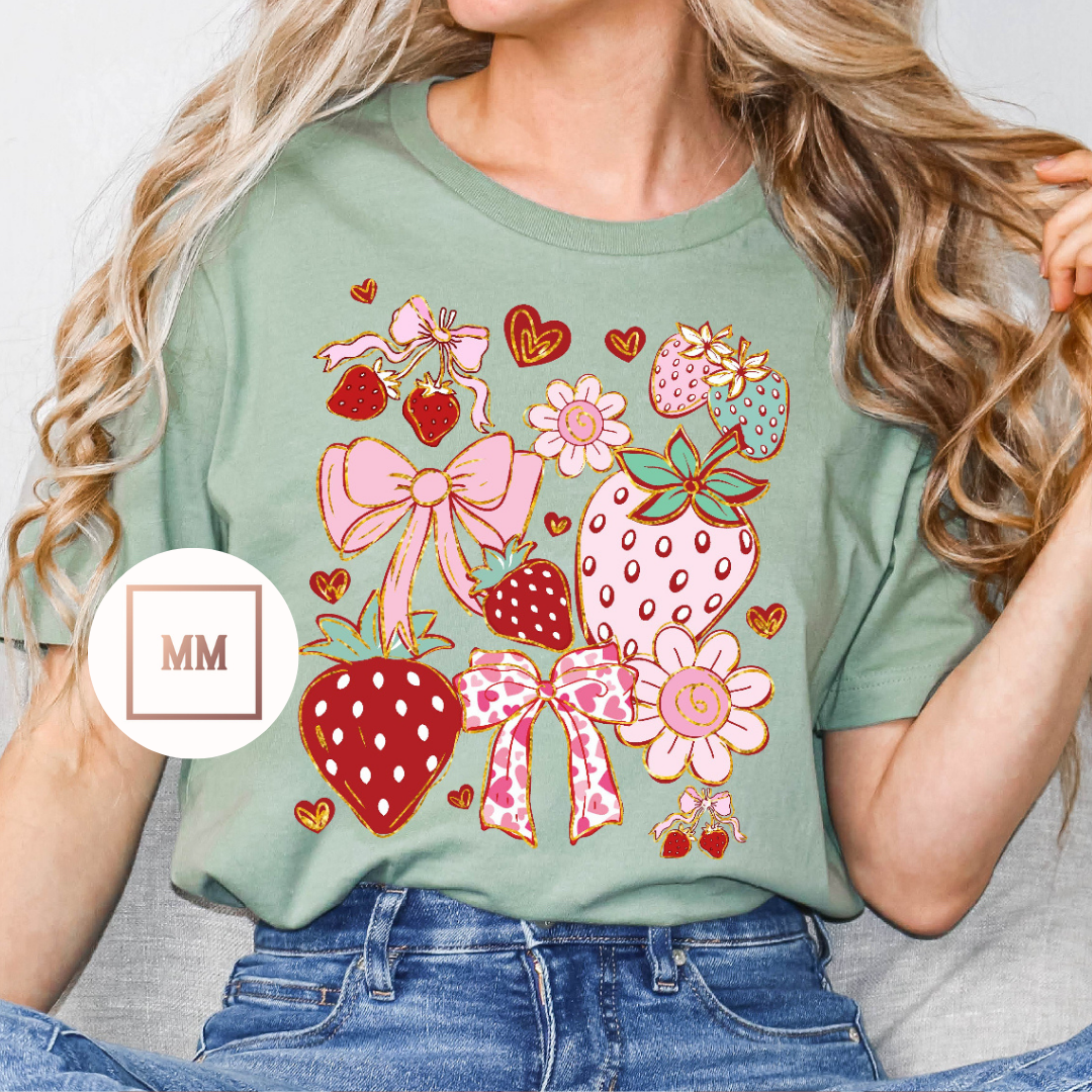 Upgrade your summer wardrobe with our sweet Strawberry Tee. Made with high-quality fabric, this tee features a charming strawberry and bow design that will add a touch of whimsy to your look. Perfect for those warm summer days, this tee is a must-have for any fashion-forward individual.