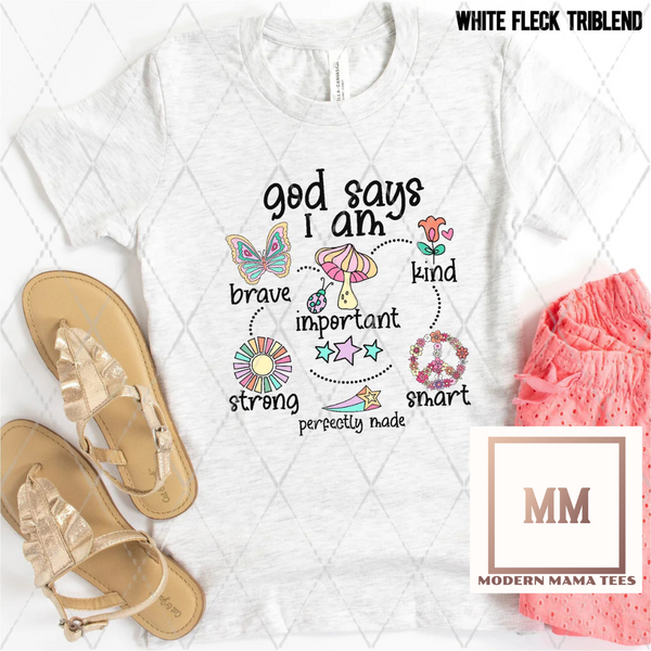 Introducing our Girly God Says I Am Tee, part of our faith based collection. Feel empowered and inspired by our unique design and message, made with high quality materials for a comfortable fit. Join us in spreading love and positivity with this tee.