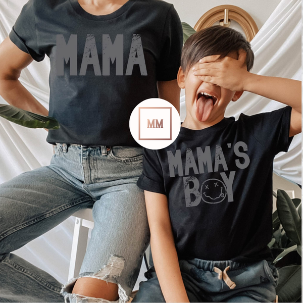 This black youth tee features a sleek matte black print, perfect for all the mama's boys out there. Match your mama in style with this comfortable and trendy shirt.