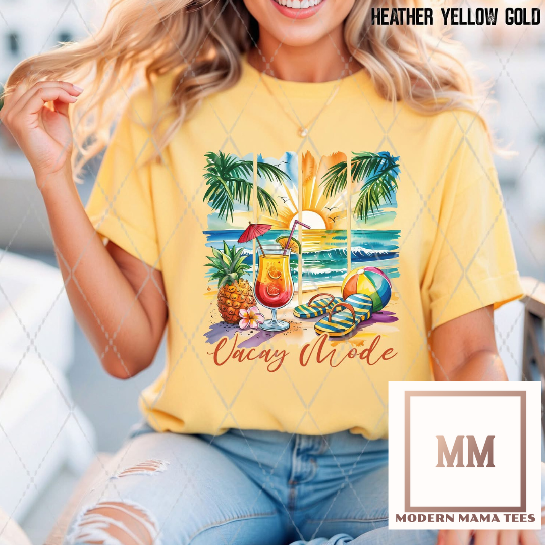Get into the vacation mindset with our Tropical Vacay Mode Tee. With its unique design and comfortable fit, this tee will have you feeling those vacay vibes all day long. So why wait? Now's the time to embrace that vacay mood and start planning your next getaway.