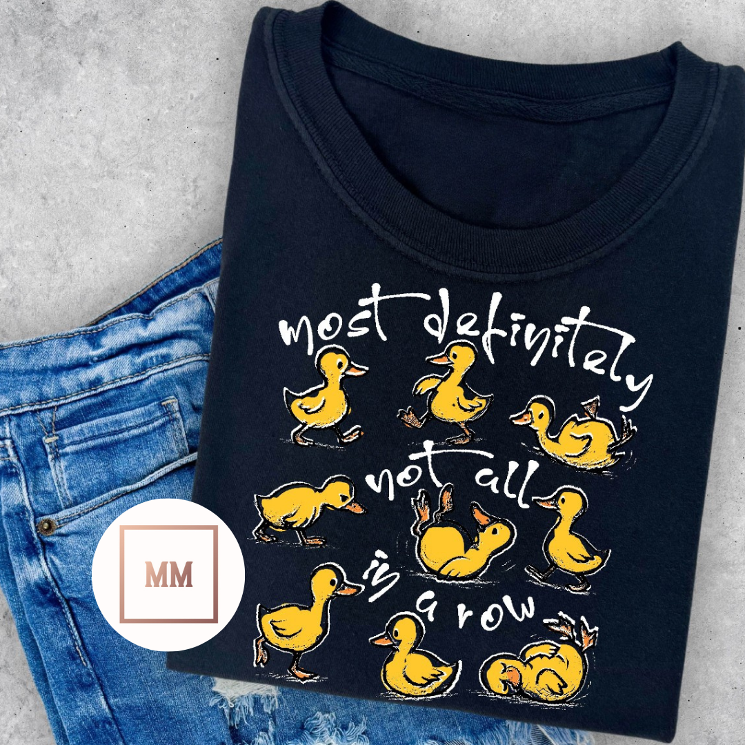 Express your unique style with the Whits Writing Not All in a Row Tee. Featuring white writing and a playful design, this tee is sure to make a statement. Perfect for those who dare to be different and stand out from the crowd. Let your creativity run wild and let the ducks loose!