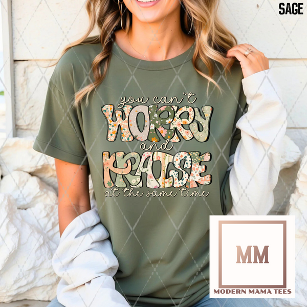 Introducing our Worry & Praise Tee, part of our faith based collection. Feel empowered and inspired by our unique design and message, made with high quality materials for a comfortable fit. Join us in spreading love and positivity with this tee.
