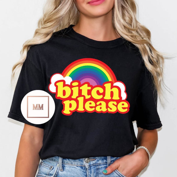 Discover a new level of style with the B Please Tee. Featuring the iconic "b please" and a vibrant rainbow, this tee is perfect for making a statement. Made with high-quality materials, you'll feel comfortable and confident in this one-of-a-kind shirt. Upgrade your wardrobe today.