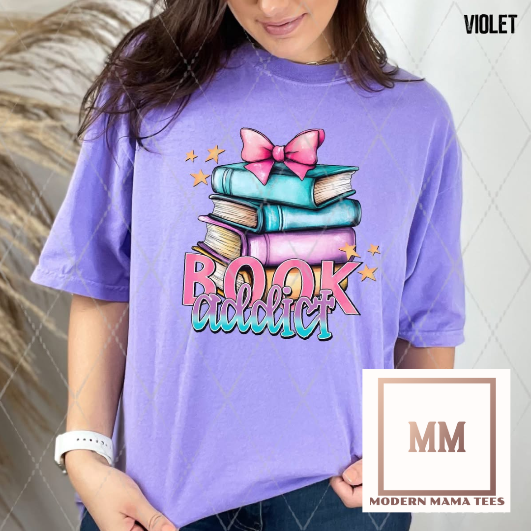 Express your love for books with our Book Addict Tee! Featuring a stack of books, this tee is perfect for book collectors. Made for those who love books but never get around to reading them. Show off your bookworm status with this tee.