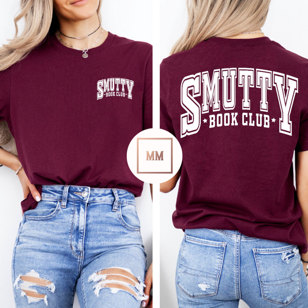 Join the Smutty Book Club and get ready to indulge in your love for risqué books with this tee! This tee is perfect for any book lover who isn't afraid to embrace their naughty side. Show off your literary style with this cute tee.