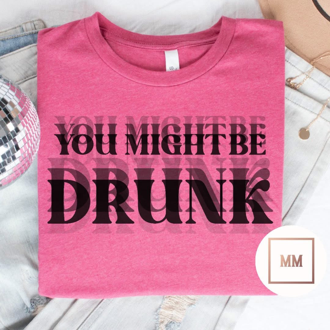 This tee is perfect for those who enjoy a good laugh and a good drink. The fading lettering adds an element of dizziness, while the humorous message "You Might be Drunk" is sure to make everyone smile. Made with high-quality materials, this tee is a must-have for those who like to let loose and have a good time.