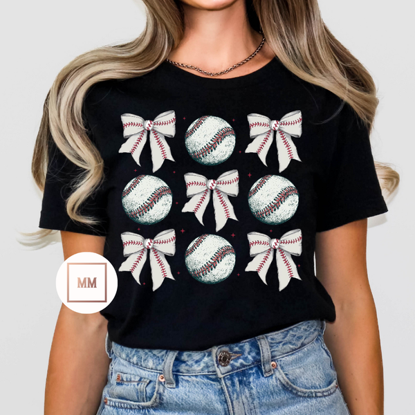 This Baseball Coquette Bows Tee is a must-have for any baseball fashionista. The unique coquette bow adds a touch of feminine flair to the classic tee design. Expertly crafted for comfort and style, this tee is perfect for the game or everyday wear.