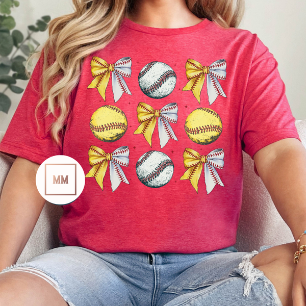 This Baseball & Softball Coquette Bows Tee is a must-have for any baseball & softball fashionista. The unique coquette bow adds a touch of feminine flair to the classic tee design. Expertly crafted for comfort and style, this tee is perfect for the game or everyday wear.