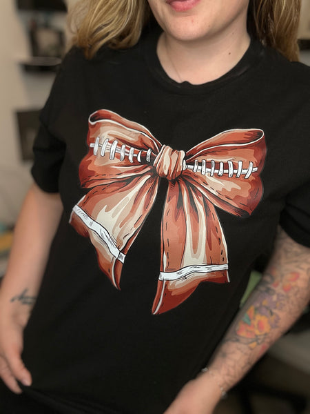 Introducing our Football Bow Tee, the perfect combination of style and sportsmanship. With a football coquette bow, this tee adds a touch of sporty flair to your wardrobe. Show off your love for the game while looking stylish at the same time.
