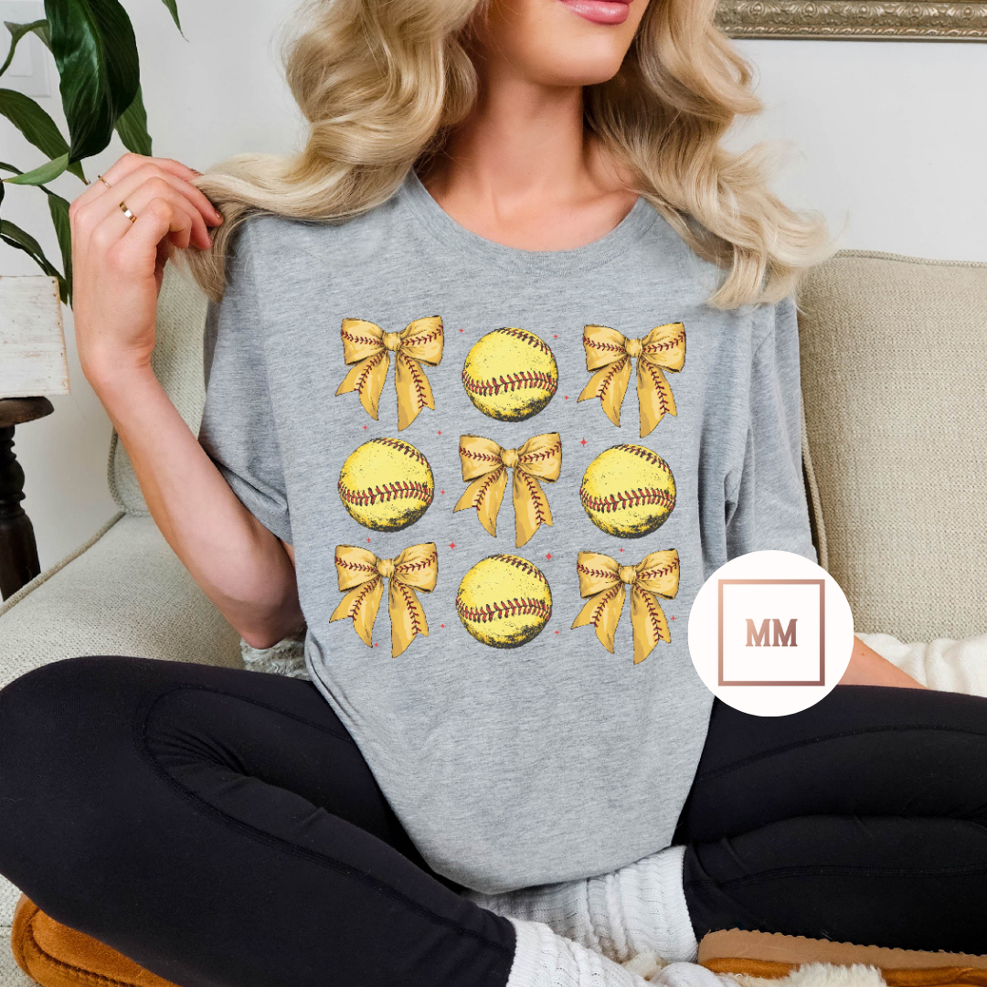 This Softball Coquette Bows Tee is a must-have for any softball fashionista. The unique coquette bow adds a touch of feminine flair to the classic tee design. Expertly crafted for comfort and style, this tee is perfect for the game or everyday wear.
