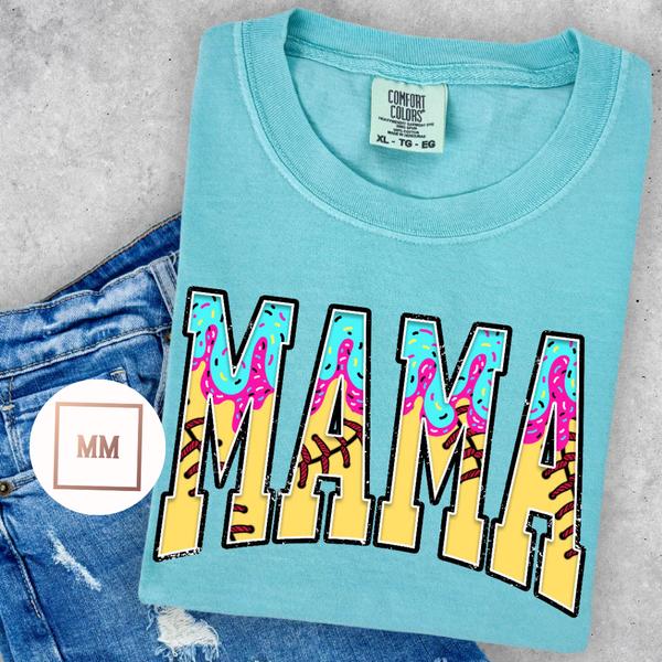 This Comfort colors tee features a cool ice cream drip design, making it perfect for any softball mama. Stay comfortable and stylish while supporting your favorite softball player. Made with high-quality materials, this tee is sure to be a favorite both on and off the field.