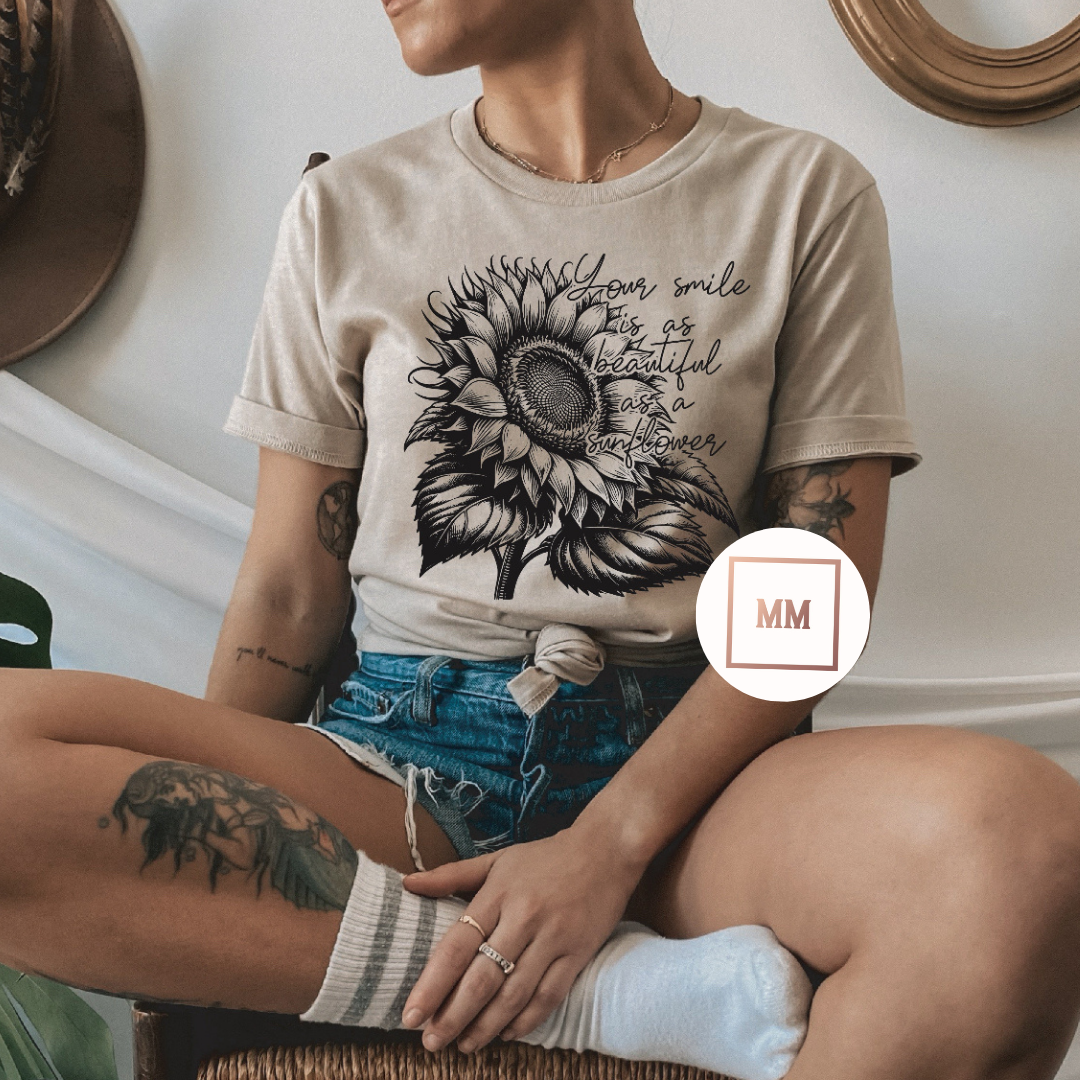 This soft and comfortable tee features a beautiful sunflower design and a meaningful phrase, making it the perfect addition to your wardrobe. Show off your sunny personality and spread joy wherever you go with this As Beautiful As A Sunflower Tee.