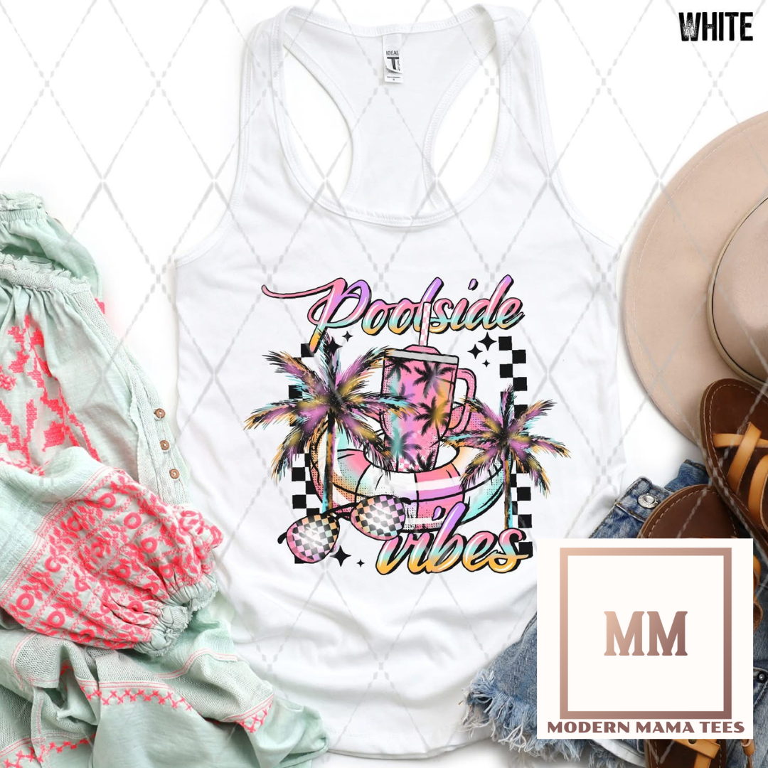 Get ready for a day of relaxation with our Poolside Vibes Tank. Featuring a pool floaty image, this tank will keep you looking and feeling cool while tanning on the pool side. With its fun design, you'll be ready to make a splash in style.