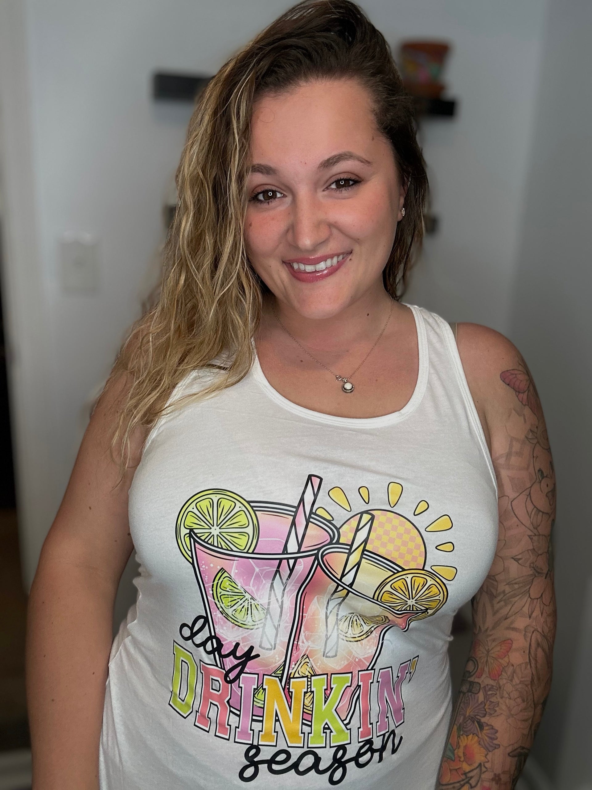 Embrace the carefree spirit of summer with our Day Drinkin’ Season Tank. Made for those long, hot days of day drinking, this tank is perfect for embracing the season and sipping on your favorite drinks. Featuring a cute graphic and lightweight material, it's the perfect addition to your summer wardrobe.