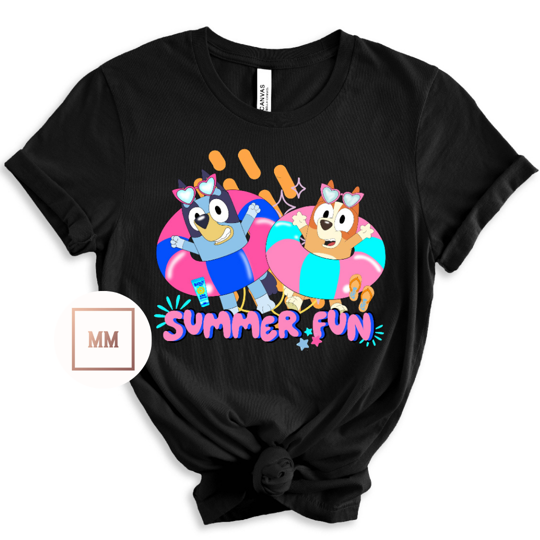 This Dogs Summer Fun Tee is perfect for any dog lover! Featuring colorful dogs wearing pool floaters, this tee is perfect for a fun day by the pool. Made with lightweight and breathable fabric, it's perfect for those hot summer days. Get ready for some summer fun with this adorable tee!