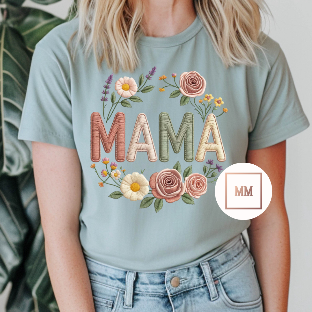 Faux Embroidered Boho Mama Tee